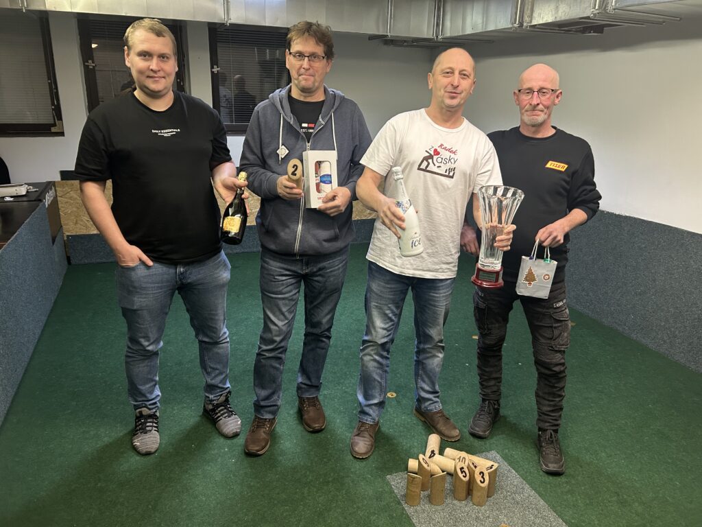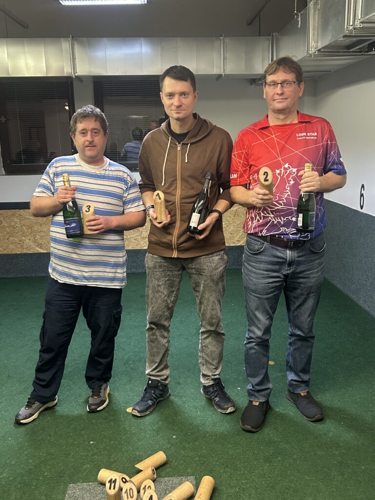 Startovalo 12 hráčů, nejlepší tři jsou na fotce. Zvítězil Luďa, ve finále s Milanem, třetí skončil Michal.